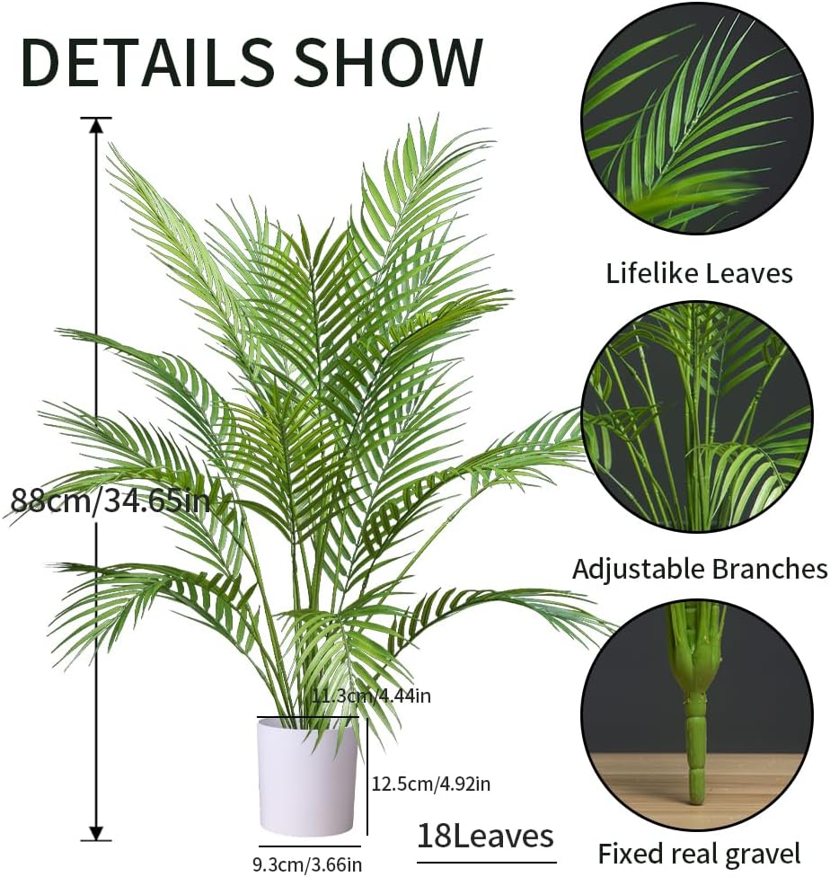 • 【Carefully designed】This fake plant potted set is carefully designed to showcase the characteristics of tropical plants such as palm trees and turtle bamboo to the fullest extent. Two pots of plants are different styles of plants, and these different combinations make indoor decoration no longer monotonous. Each plant has 18 leaves, and if you randomly organize the degree of curvature of the leaves and plant branches, it will look like a small tree.