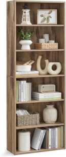 • 【SPACE-SAVING & ADJUSTABLE】This 6-tier bookcase, measuring 9.4″D x 23.6″W x 63.3″H, optimizes vertical space. The 2nd, 3rd, 5th and 6th tiers are adjustable to 3 heights (up or down 1.2″), easily accommodating tall books, artwork, or storage boxes